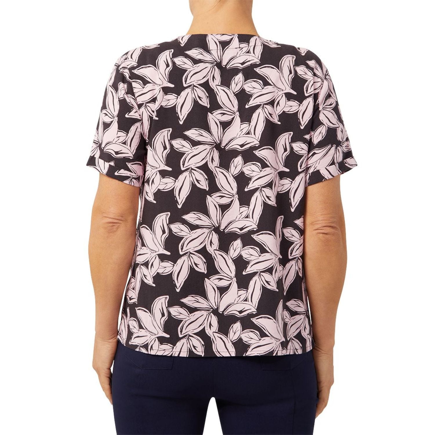 TIGI 10/12 Graphic Leaf Print Notch Neck Shirt