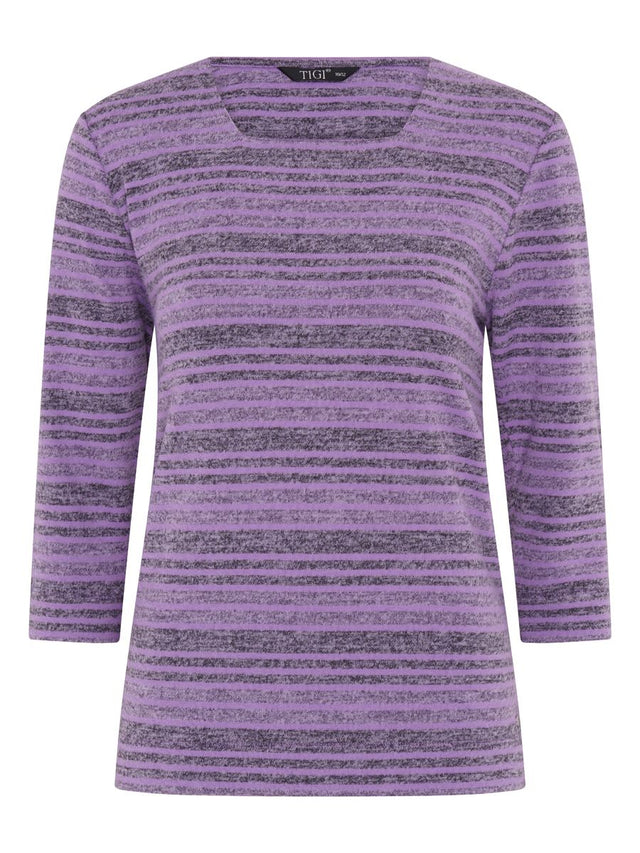TIGI 14/16 Amethyst Melange Stripe Square Neck Top - T25-05A