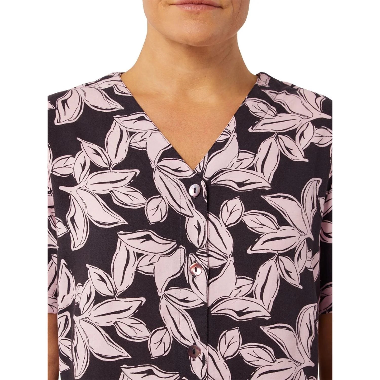 TIGI 14/16 Graphic Leaf Print Notch Neck Shirt