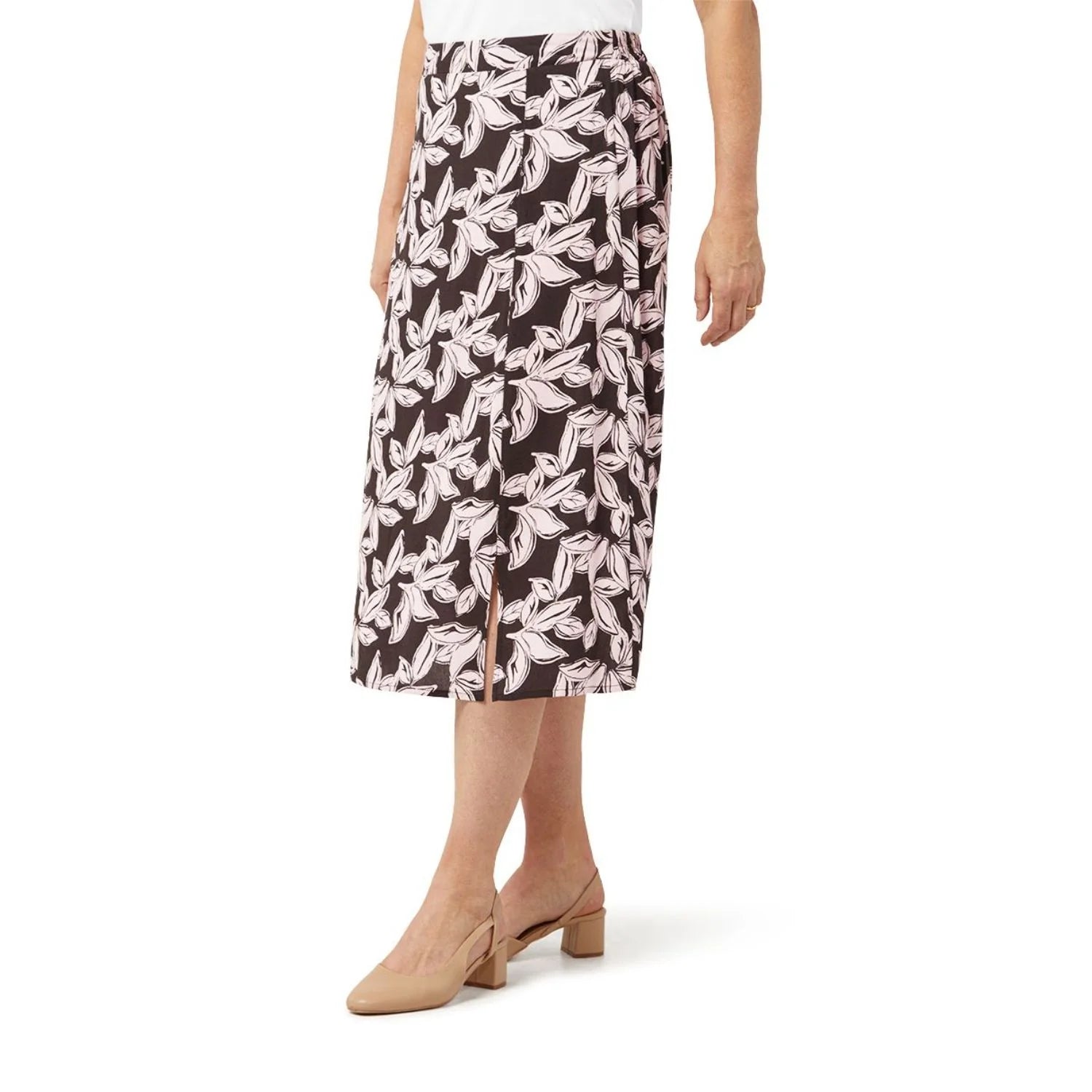 TIGI 14/16 Graphic Leaf Print Skirt is backordered and will ship as soon as it is back in stock.