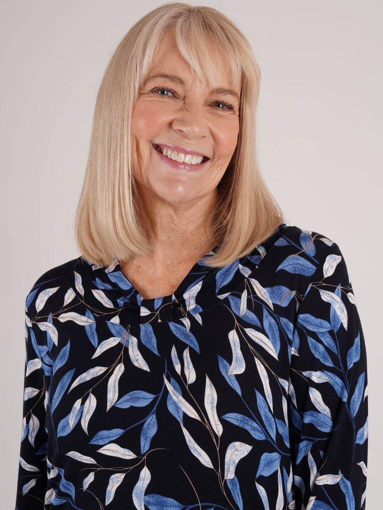 This versatile printed top is designed with a flattering drape neckline, adding a stylish twist to a wardrobe essential. Crafted from soft printed jersey, it offers all-day comfort with a sleek, stripped-back design featuring Β½ length sleeves for a polished finish. Pair it with the matching skirt for an effortlessly coordinated look.