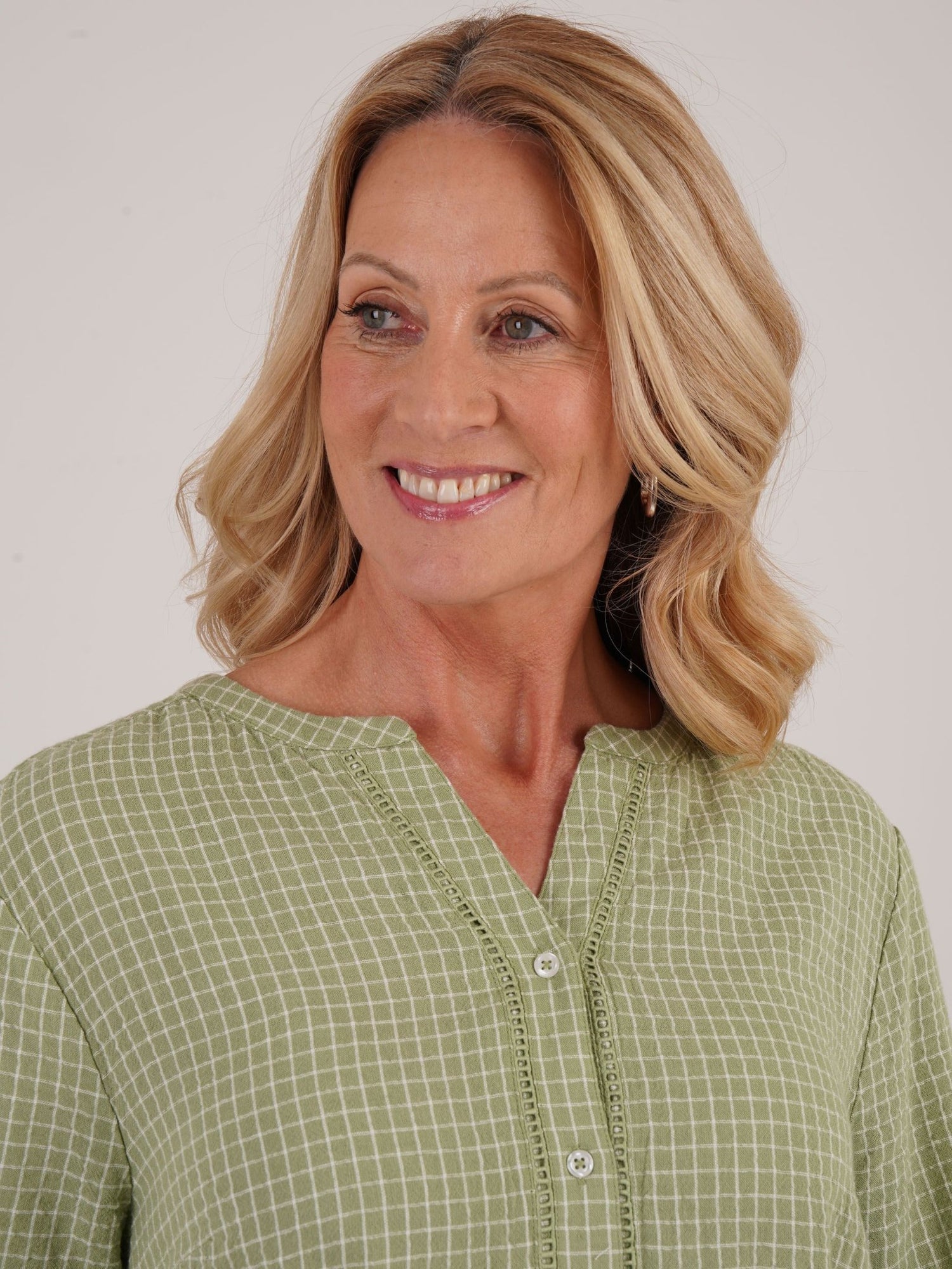 TIGI 18/20 Green Grid Check Notch Neckline - T25-46D