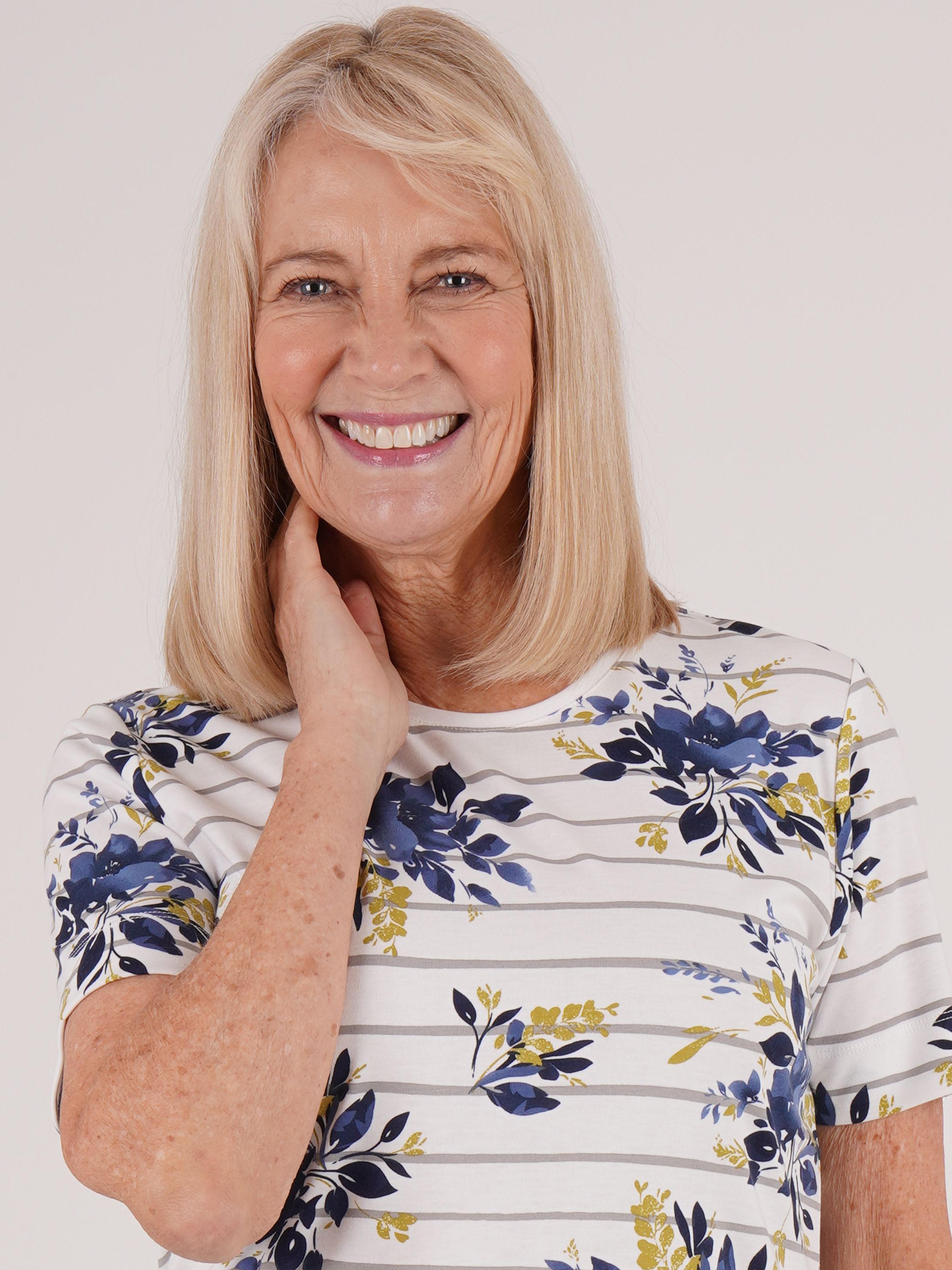 TIGI 18/20 Ivory Stripe Floral Short Sleeve Top - T25-31C