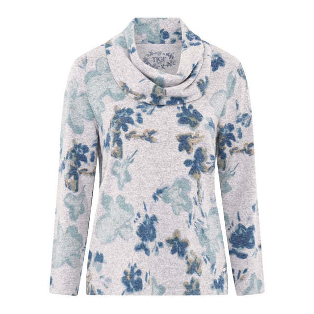 TIGI Fade Floral Cowl Neck Top – Grey, Elegant and Comfortable