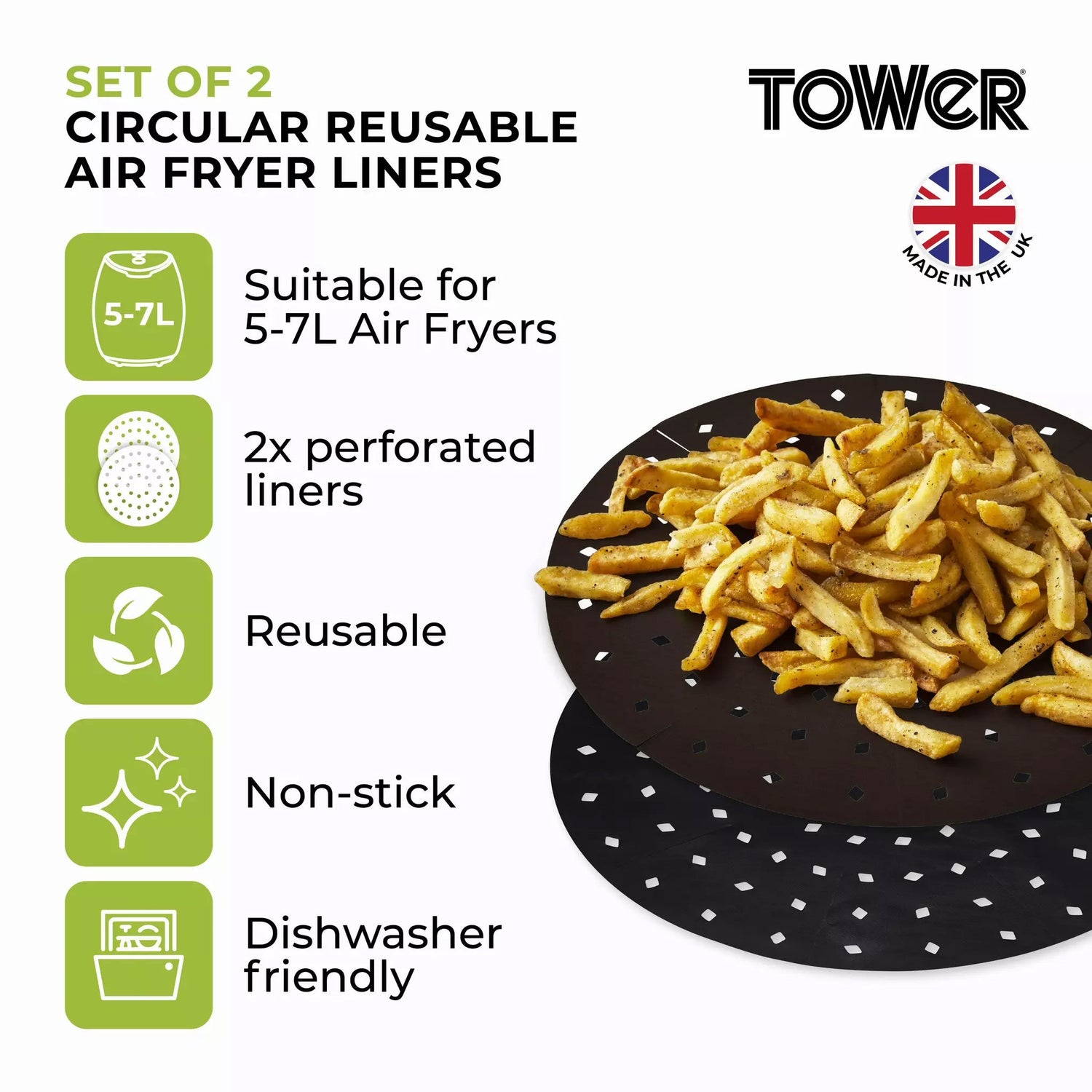 Introducing the Tower Pack of 2 Circular Air Fryer Liners for 5-7 Litres: Maintain Cleanliness and Enhance Cooking Efficiency!