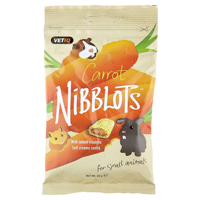 Give your small pets a tasty and nutritious treat with Vet IQ Nibblots Carrot Treats. Specially formulated for small animals like rabbits, guinea pigs, and hamsters, these delicious treats provide a healthy balance of flavour and nutrition. Each bite-sized nibble contains a crispy outer shell with a soft, creamy carrot-flavoured centre, enriched with essential vitamins to support overall wellbeing.