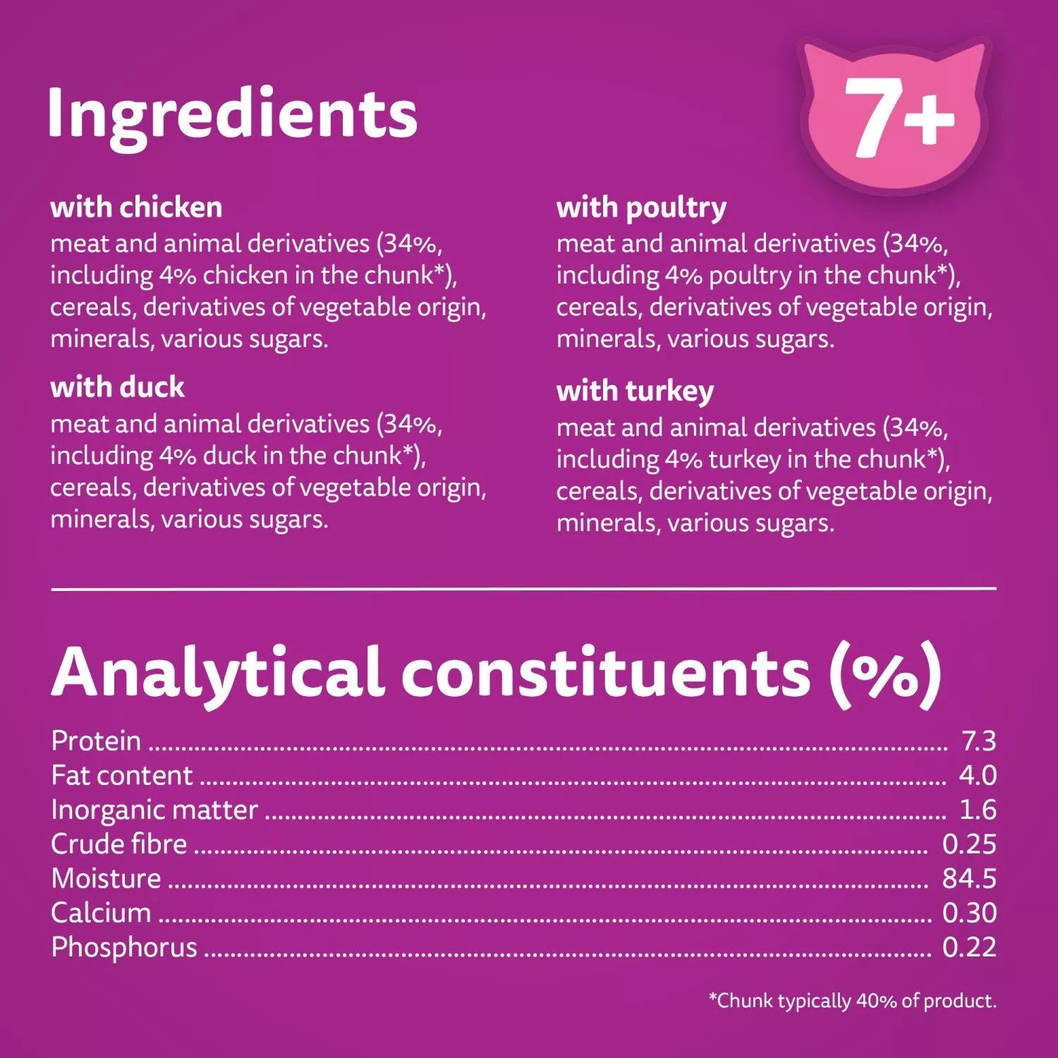 - Moisture-Rich Gravy: Served in a savoury gravy that not only enhances flavour but also helps keep your cat hydrated.