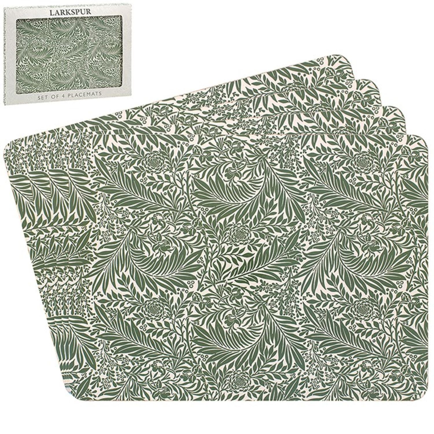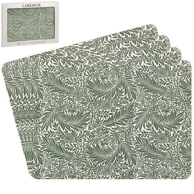 - Elegant Design: Each placemat showcases the Larkspur Leaves pattern, a classic design by William Morris that highlights intricate floral motifs and natural elements.
