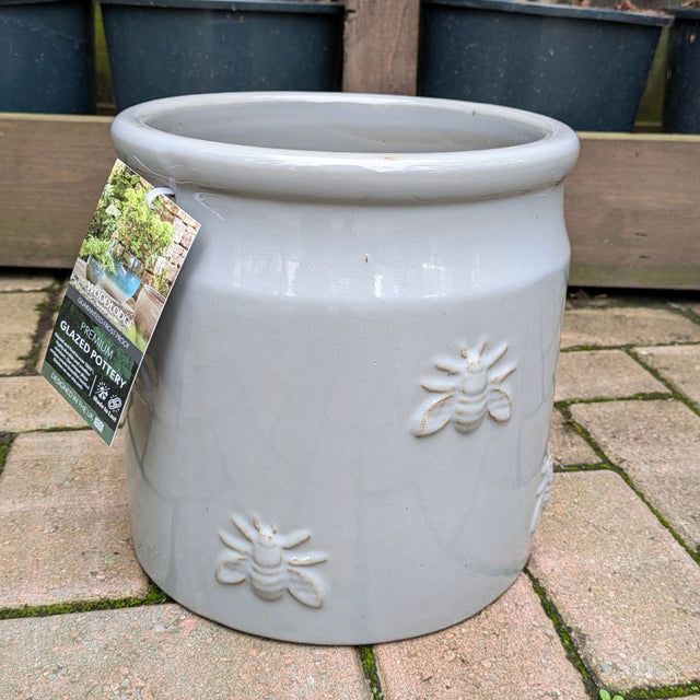 Woodlodge 24cm Grey Bee Glazed Pot