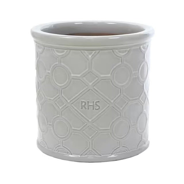 Woodlodge 30cm White RHS Cylinder Lattice Glazed Pot