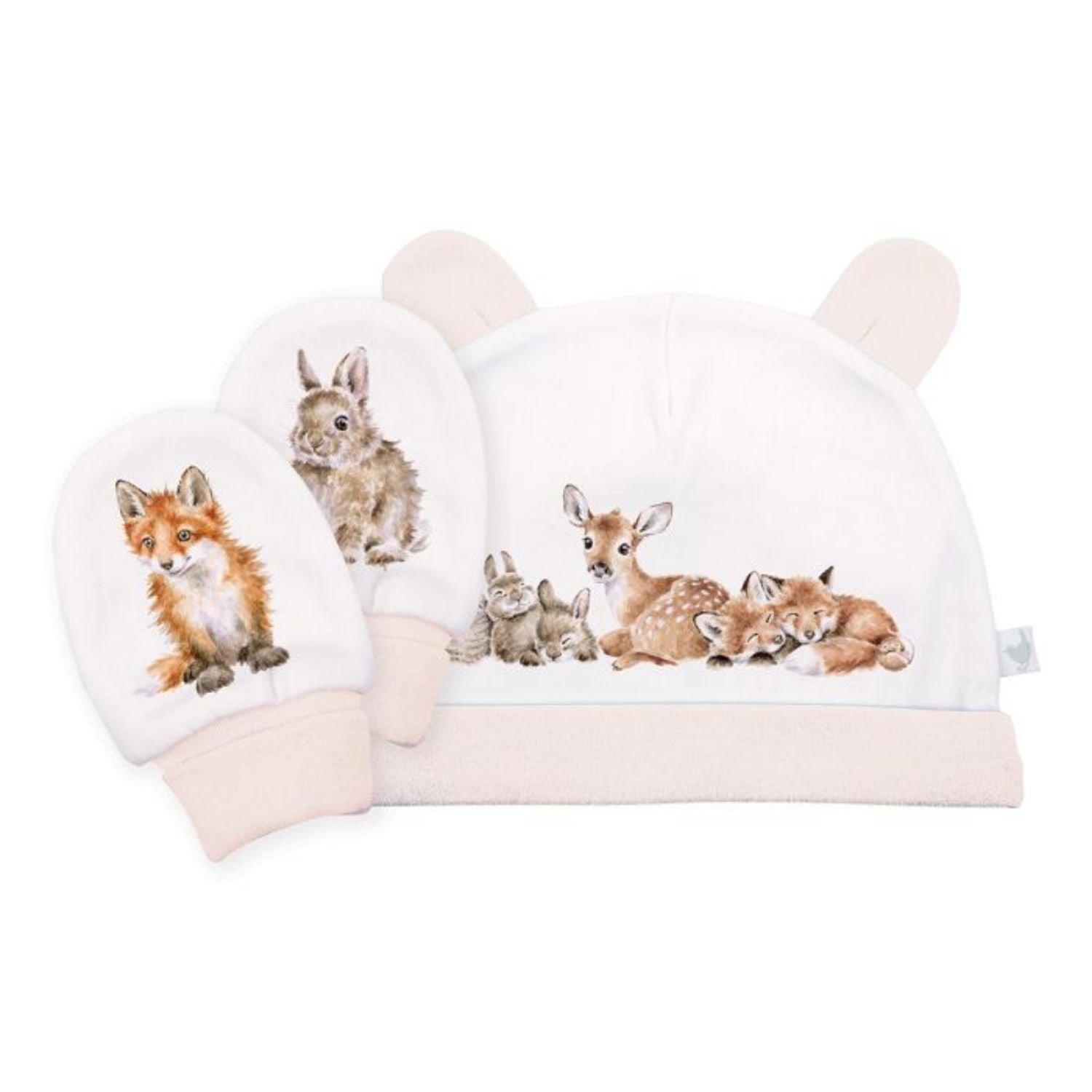 Wrendale Little Forest Woodland Animal New Born Hat & Mitten Set