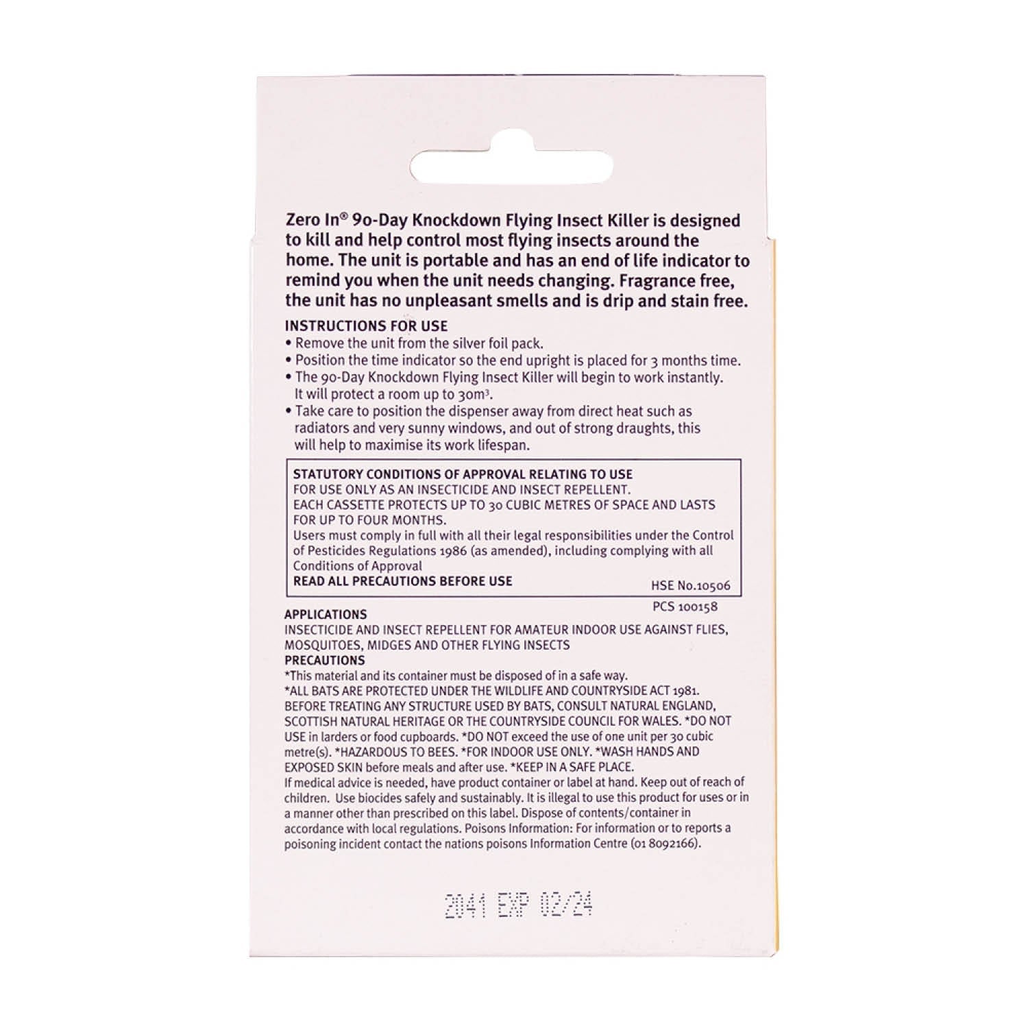 Protect your home from flying insects with the Zero In® 90-Day Knockdown Flying Insect Killer. This discreet and easy-to-use unit offers whole-room protection, killing and repelling common flying insects such as flies and mosquitoes for up to 90 days.