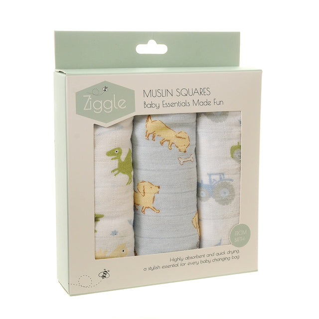 Introducing the Ziggle Baby Blues Muslin Set, a luxurious and versatile addition to your baby essentials. This set of three muslins is crafted from thick, 100% soft cotton, providing comfort and practicality for various uses.
