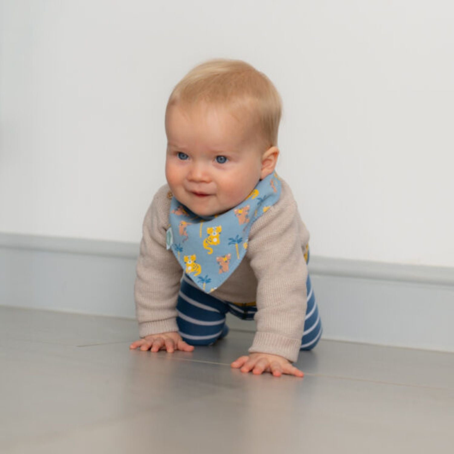 The Ziggle Baby Leopards and Tigers Bib Set is a specific variation of the Ziggle bib sets that focuses on a theme featuring leopards and tigers. These bibs are designed with playful and vibrant prints of these big cats, adding a fun touch to a baby's feeding time.